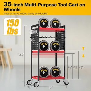 - 150 lbs Weight Capacity: Metal utility cart made of highly durable steel with rust-resistant coating finish, which support up to 150 lbs. Compared with ordinary tool carts, our portable tool cart excel in bending resistance and stability, value for money