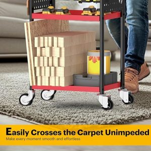 - 360°Flexible Mobility: The rolling cart design with 2 fixed wheels unlockable switches and 2 universal wheels 360°rotation, easily move on concrete floors, wooden boards, even carpets, It is suitable for various light occasions use such as garage, warehouse, workshops, outdoors