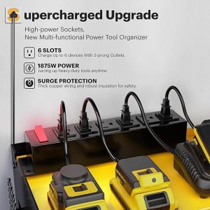- High performance: Power tool organizer with charging station, equipped with 6 movable outlets power strip, making it convenient for you to charge more tools while keeping the charging tools organized in the work area, saving you workspace