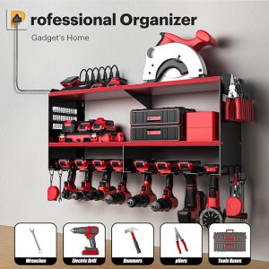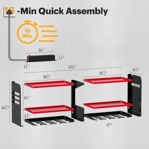 - Ease of assembly and capacity: The tool organizer is made of thickened heavy-duty steel metal, which can be used to quickly assemble a perfect power tool storage rack in 15 minutes. Each layer of the tool shelf can support up to 100LBS