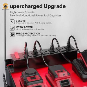 - High performance: Power tool organizer with charging station, equipped with 6 movable outlets power strip, making it convenient for you to charge more tools while keeping the charging tools organized in the work area, saving you workspace