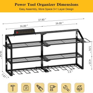 - Professional Tool Storage Solution: SPAMPUR organizer transforms wasted wall space into a compact, efficient area. Multi-tier design stores power/hand tools centrally—all-in-one storage for drills, chargers, batteries and toolboxes. Optimize workspace with tools within arm’s reach.
