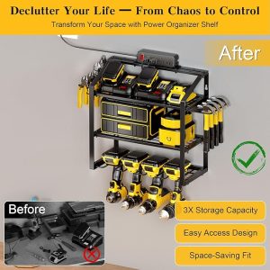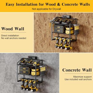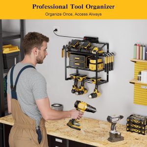 - Heavy-Duty&Durable: Crafted from thickened industrial-grade steel with reinforced full-frame welding, our power tool rack cradles every tool like a reliable partner, supporting 180 lbs. Rust-resistant black powder-coated finish ensures lifelong durability, resisting scratches, rust, and deformation.