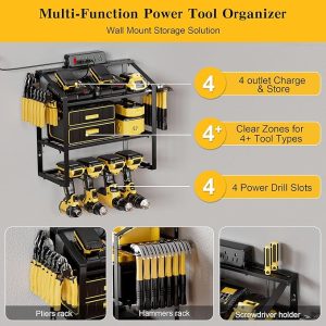 - Professional Tool Storage Solution: SPAMPUR organizer transforms wasted wall space into a compact, efficient area. Multi-tier design stores power/hand tools centrally—all-in-one storage for drills, chargers, batteries and toolboxes. Optimize workspace with tools within arm’s reach.