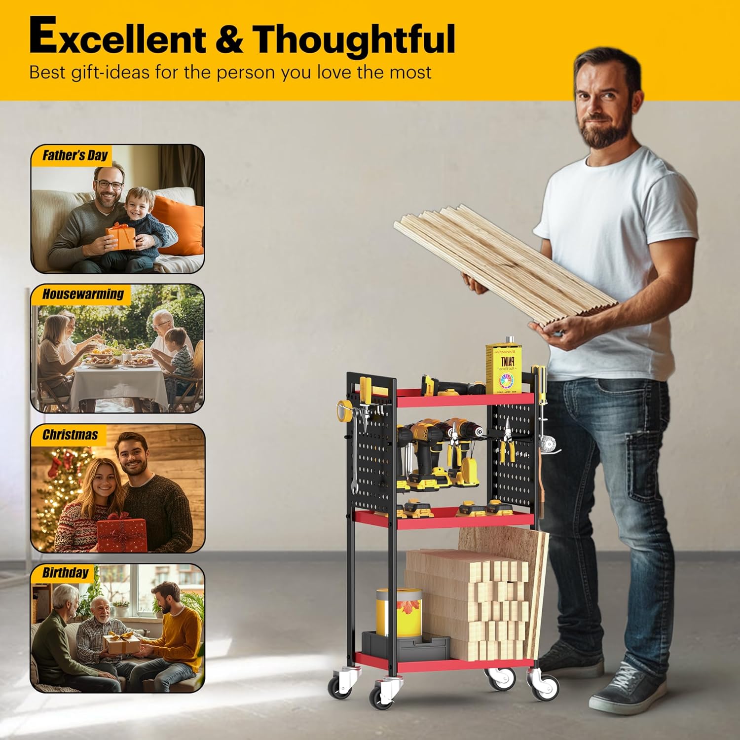- Perfect Gift Choice: Whether it’s Father’s Day, Christmas or a birthday, our power tool carts are the perfect gift for fathers, husbands and friends. Your satisfaction is our top priority, no need to worry if you encounter any problems, we are always ready to provide solutions for you