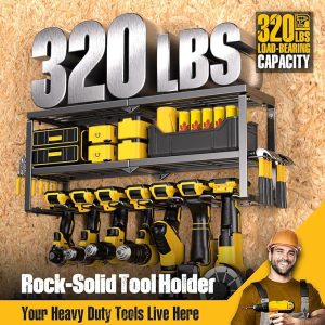 - 150 lbs Load-Bearing Capacity: The drill holder wall mount is made of heavy compact steel metal. After load-bearing testing, the utility racks can support up to 150 pounds on sturdy walls. Never again worry about the shelf breaking or the tool rack falling from the wall up and down. Our power tool holder can hold your power tools of any weight