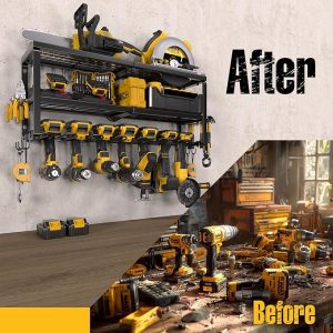 - 15- Min Fast Assembly: The installation process of the tool organizer is very easy, you just need to connect the gauge steel wire and plating with screws and hang it on the wall. We offer professional manuals and accessories. You only need a few minutes to assemble the perfect power tool rack for the workroom
