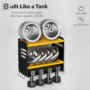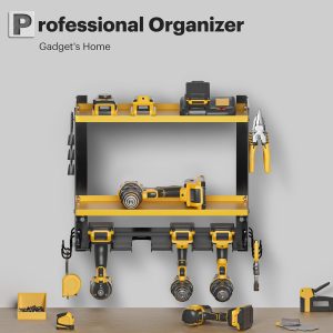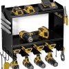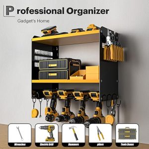 Power Tool Organizer Wall Mount, 15 Min Fast Assembly & Maximum 100lb load by Heavy Duty Metal,4 Slots for Cordless Drill, Garage Storage Shelf with Hooks, Father/Men/Husband Birthday Gift