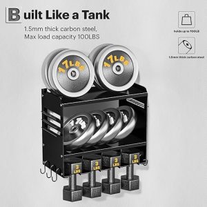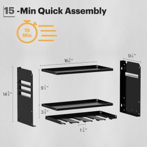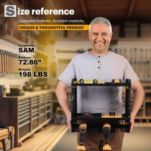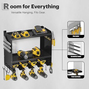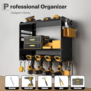 Power Tool Organizer Wall Mount, 15 Min Fast Assembly & Maximum 100lb load by Heavy Duty Metal,4 Slots for Cordless Drill, Garage Storage Shelf with Hooks, Father/Men/Husband Birthday Gift